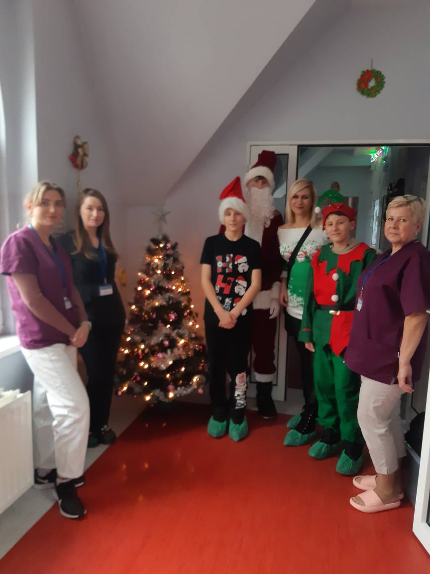 RSSDnia 5 grudnia 2025 r. delegacja naszej szkoły na czele ze św. Mikołajem oraz elfami jak co roku udała się do Szpitala Powiatowego w Dzierżoniowie, gdzie odwiedziła małych pacjentów oddziału pediatrycznego. Święty Mikołaj przekazał dzieciom paczki mikołajkowe z ręcznie malowanymi kubeczkami świątecznymi.